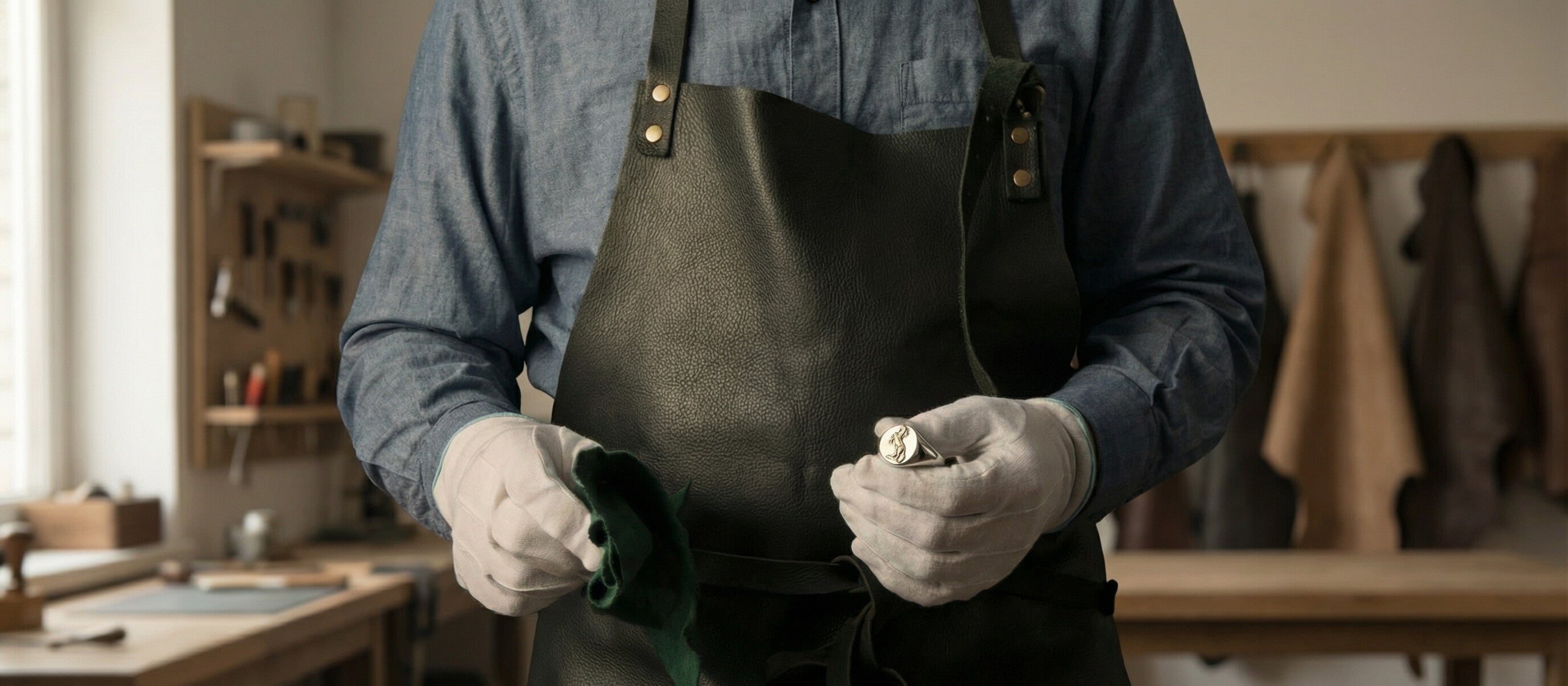 Store items separately in soft pouches or a lined jewellery box. Materials can scratch or damage each other when stored together. Handle with care during wear and storage. Natural materials age visibly over time — this is expected. How quickly depends on use, environment, and maintenance.